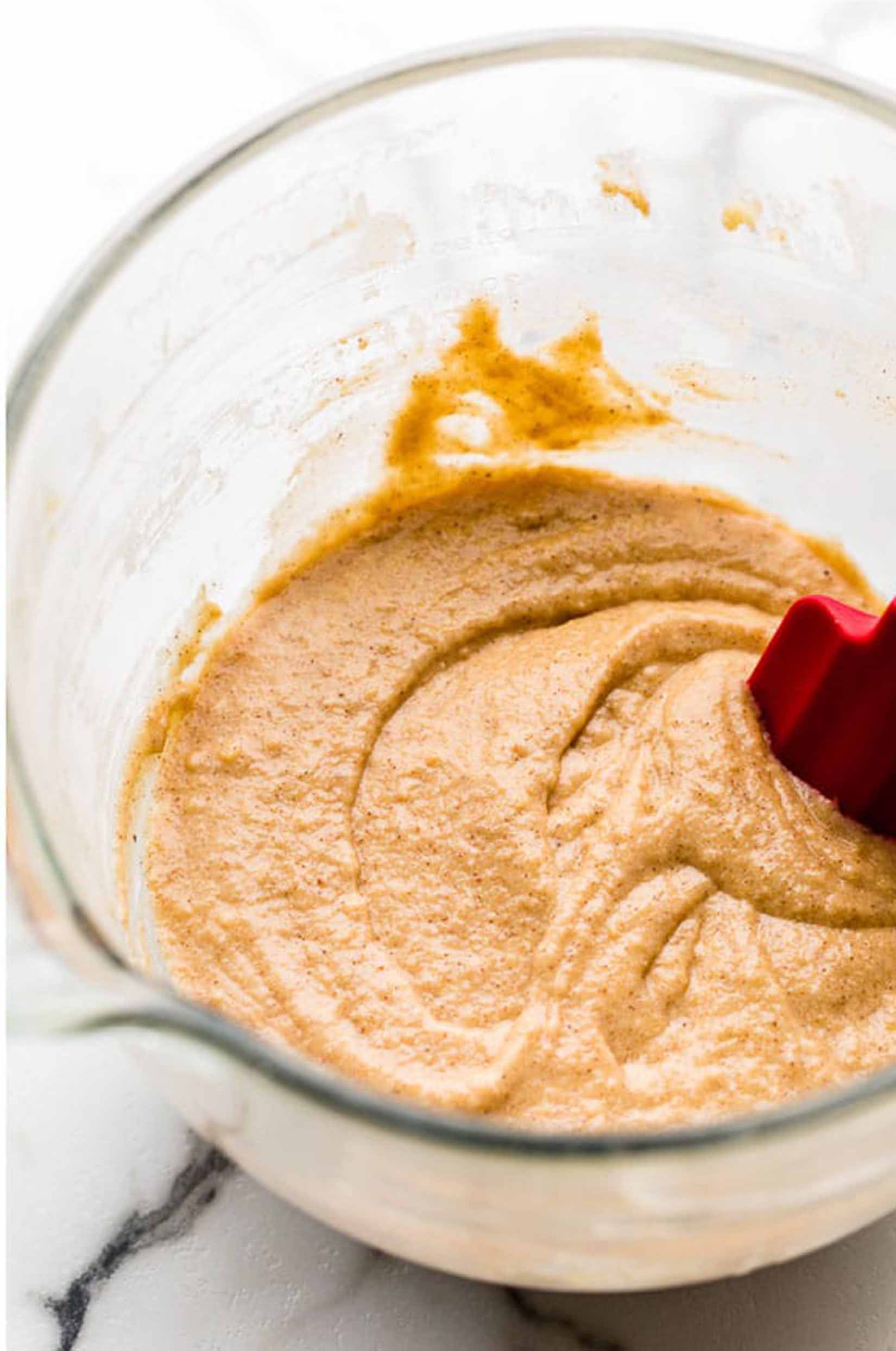 Whisk in the baking powder and baking soda, then, using a flexible spatula, stir in the flour. When only a few streaks of flour remain, fold in the apples.